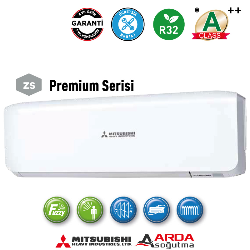 Mitsubishi Heavy Premium Seri, 12000 Btu/h kapasiteli, R32 gazlı, A++ sınıfı SRK35ZS-W inverter klima